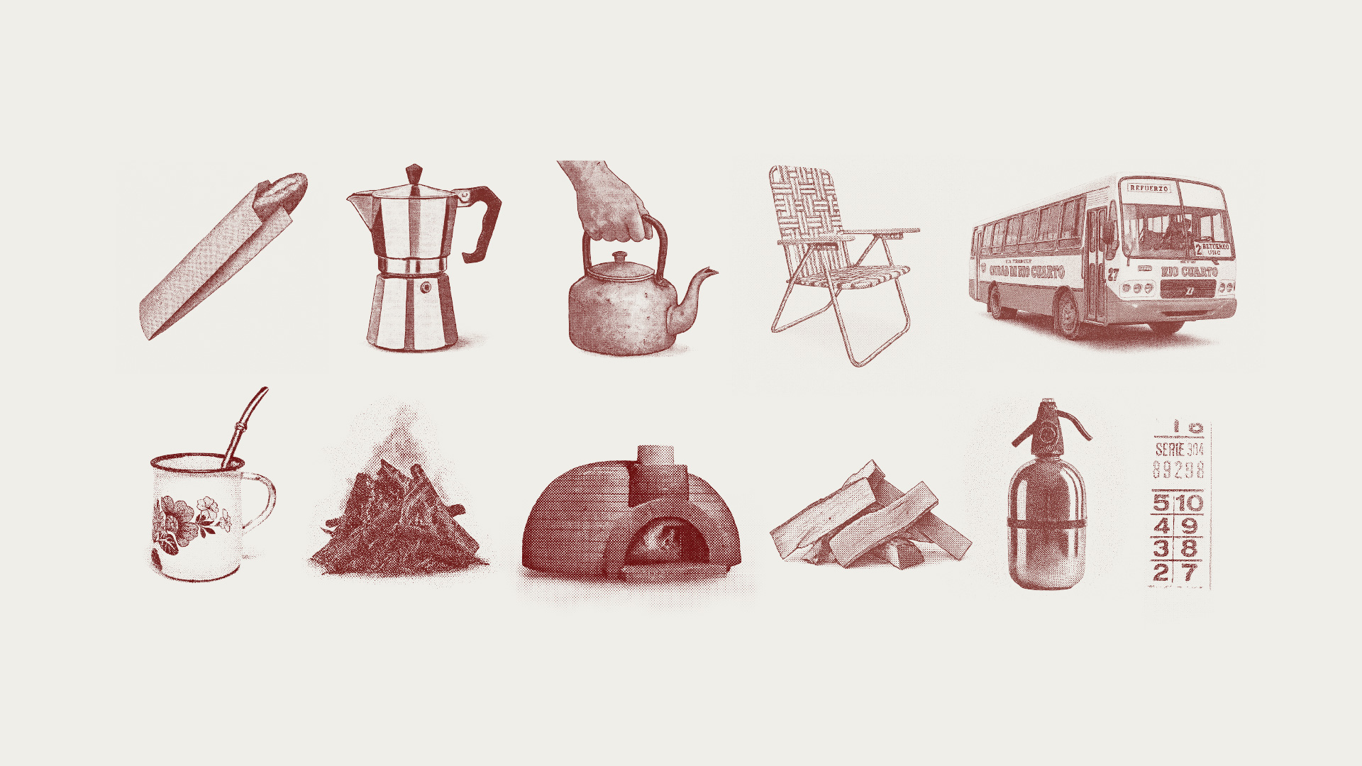 Estas ilustraciones rescatan la memoria de lo cotidiano: objetos, gestos y escenas que marcaron generaciones. El colectivo que lleva a la escuela o al trabajo, la pava siempre lista para el mate, la reposera en la vereda, el horno de barro, el sifón de soda; todos símbolos que nos devuelven a un tiempo compartido, simple y comunitario.