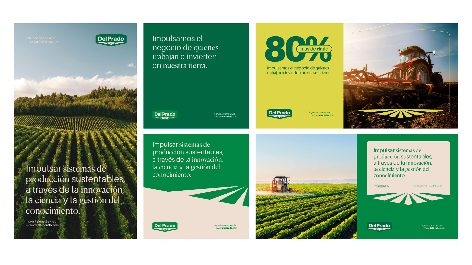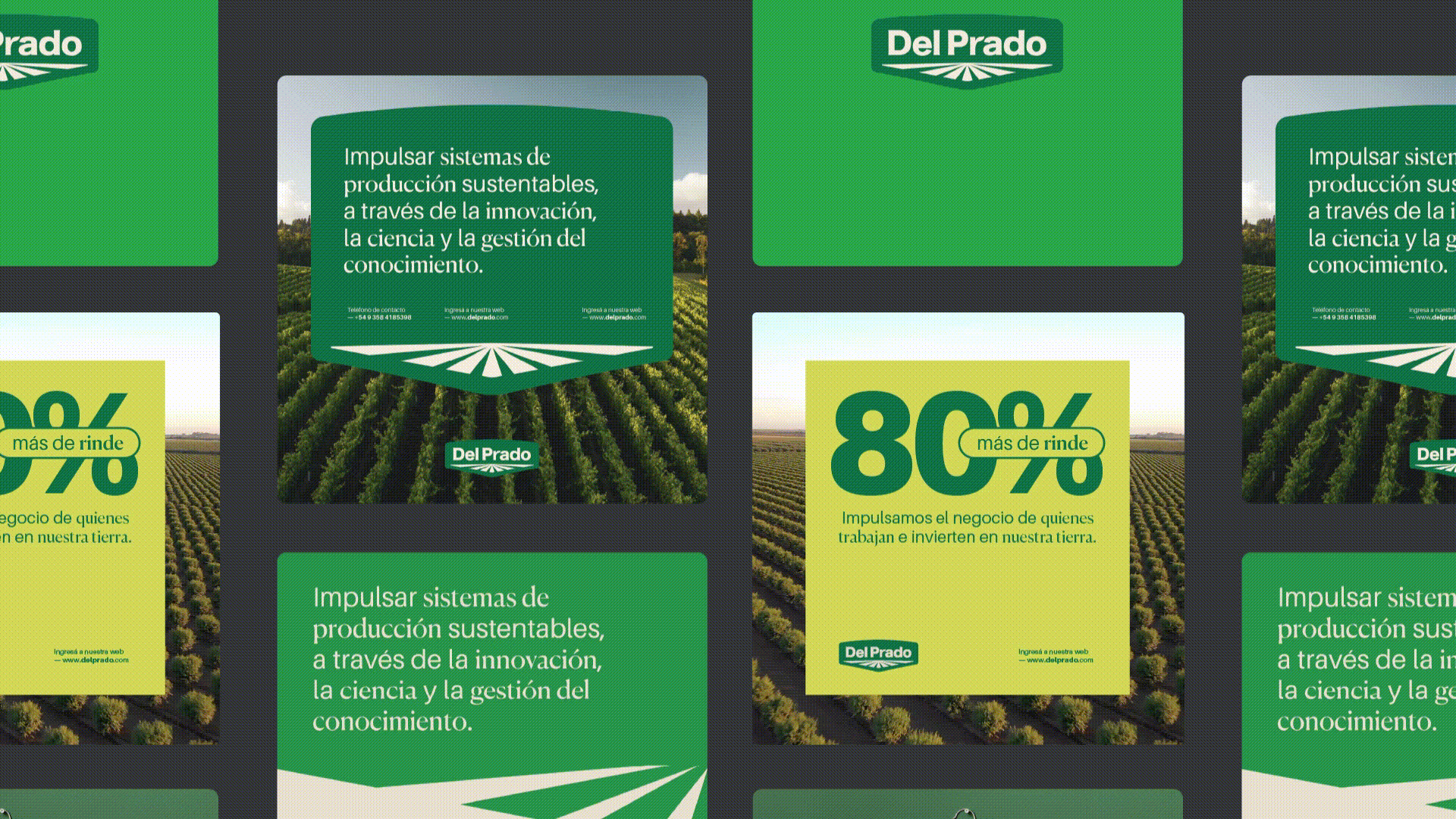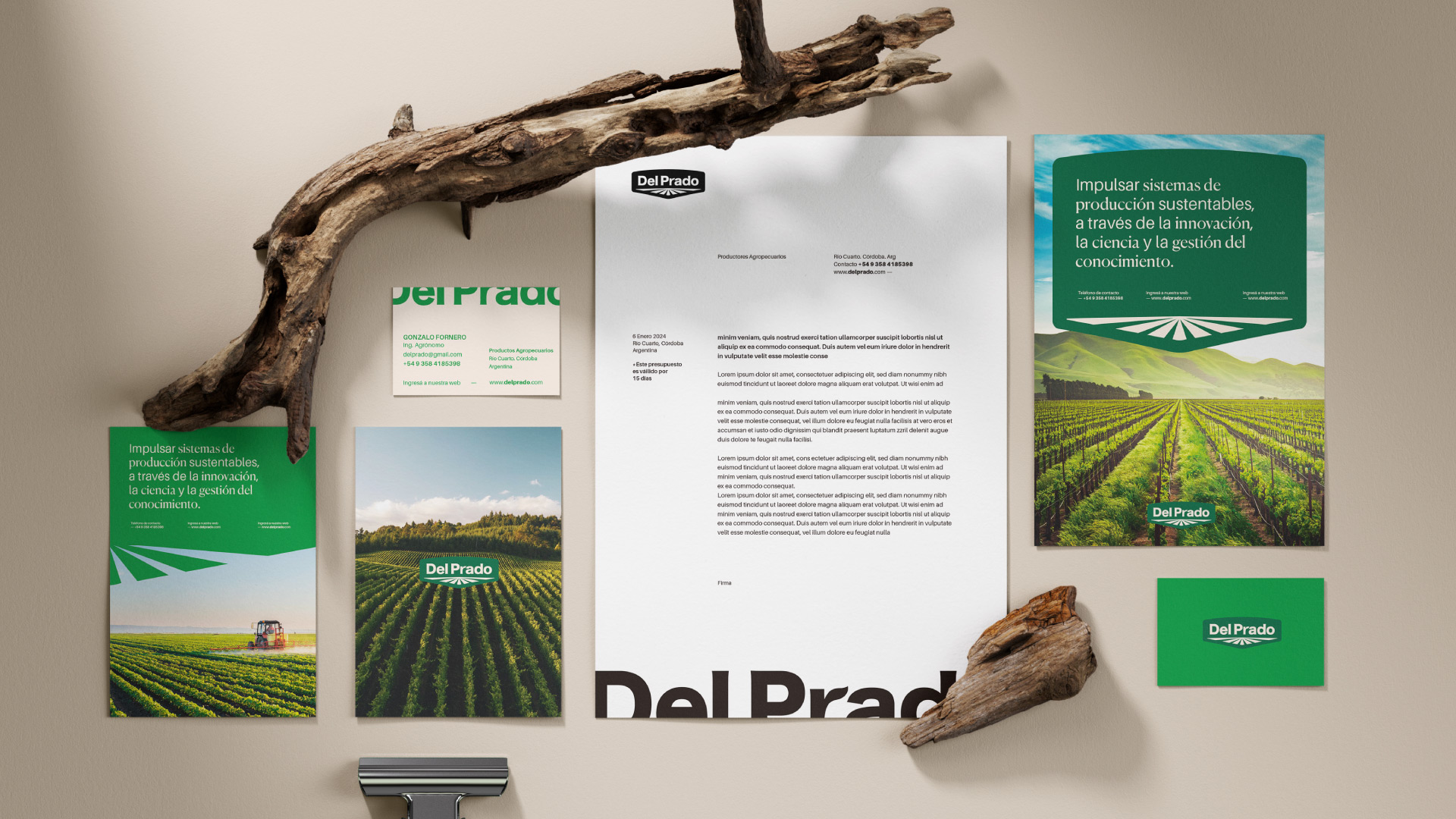 Innovación y sustentabilidad en el agro, con identidad propia Del Prado es una empresa agropecuaria argentina que se destaca por su enfoque integral en producción y asesoramiento agrícola y ganadero. Desde Arcade Studio desarrollamos una identidad visual alineada a sus valores: innovación, excelencia y sustentabilidad. Creamos un sistema de marca que potencia su posicionamiento y comunica con claridad su compromiso con la ciencia y el futuro del campo.